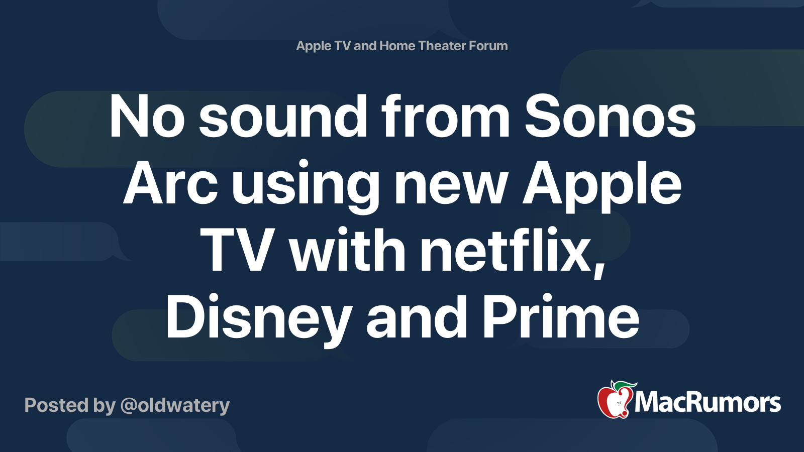 No Sound From Sonos Arc Using New Apple Tv With Netflix Disney And Prime When Watching Shows In Dolby Atmos Macrumors Forums